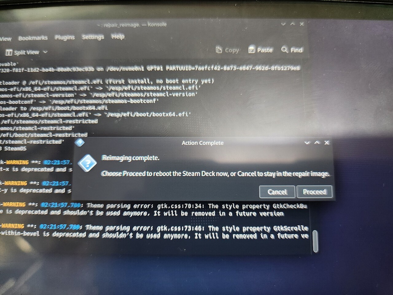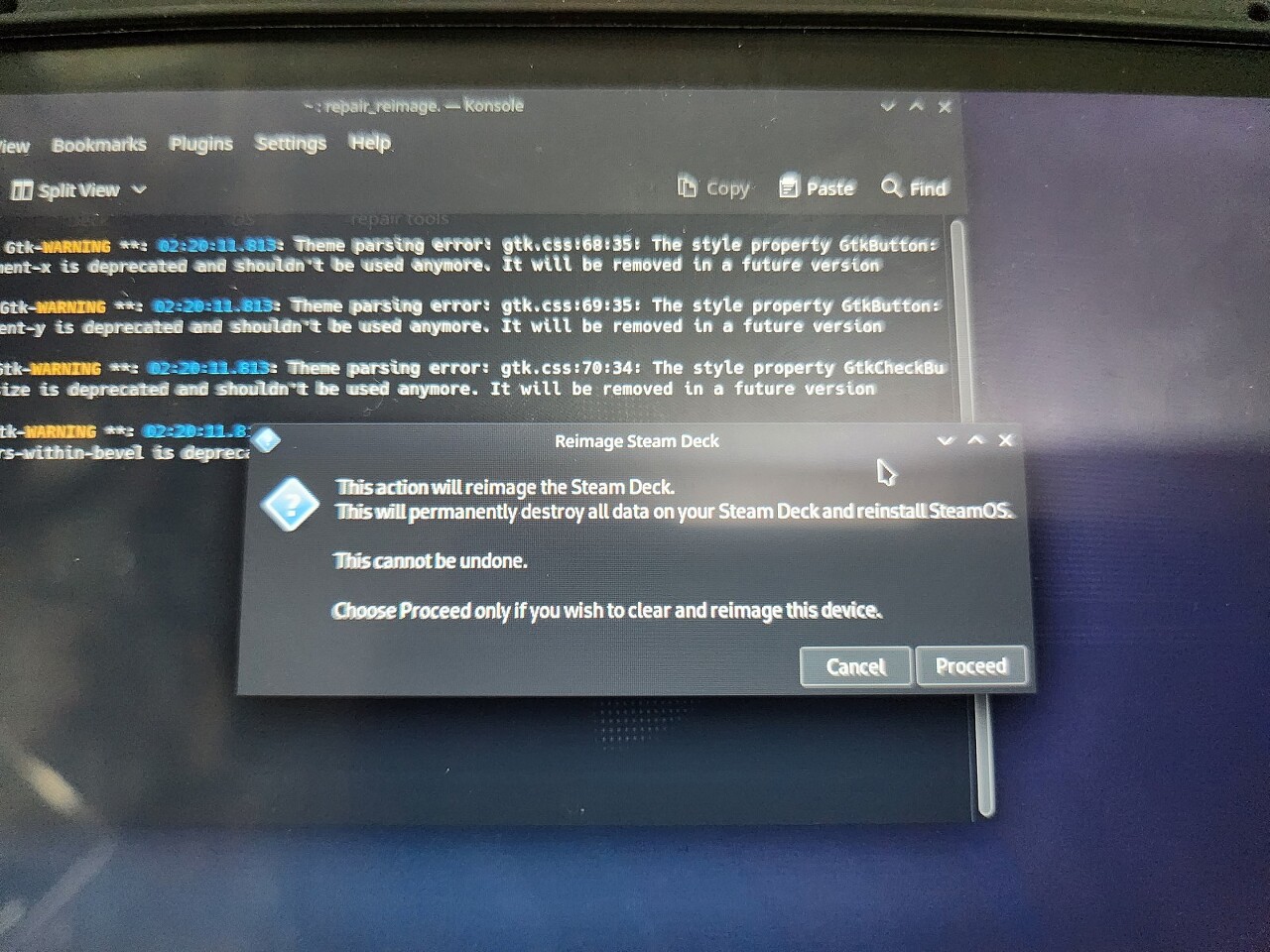 Proceed를 누르면 이제 스팀덱이 꺼집니다.