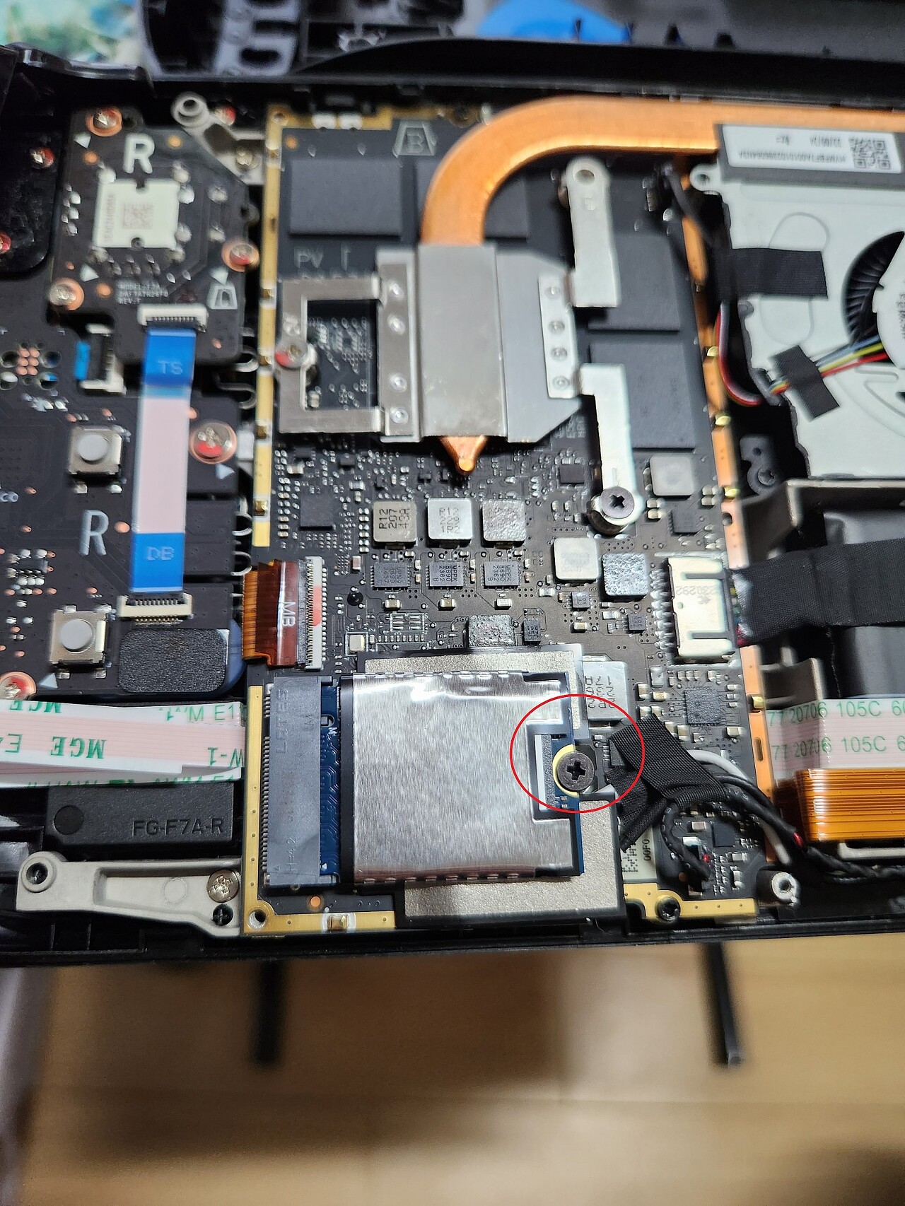 SSD가 위치하는곳이 나옵니다. 나사를 풀어고 스스디를 뽑아줍니다