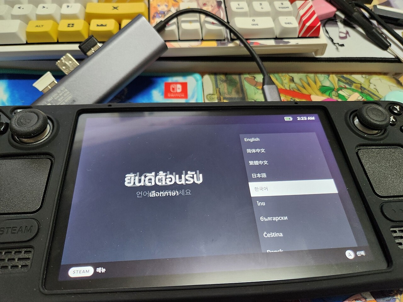 그리고 스팀덱에 꽂아줍니다 꽂으신후