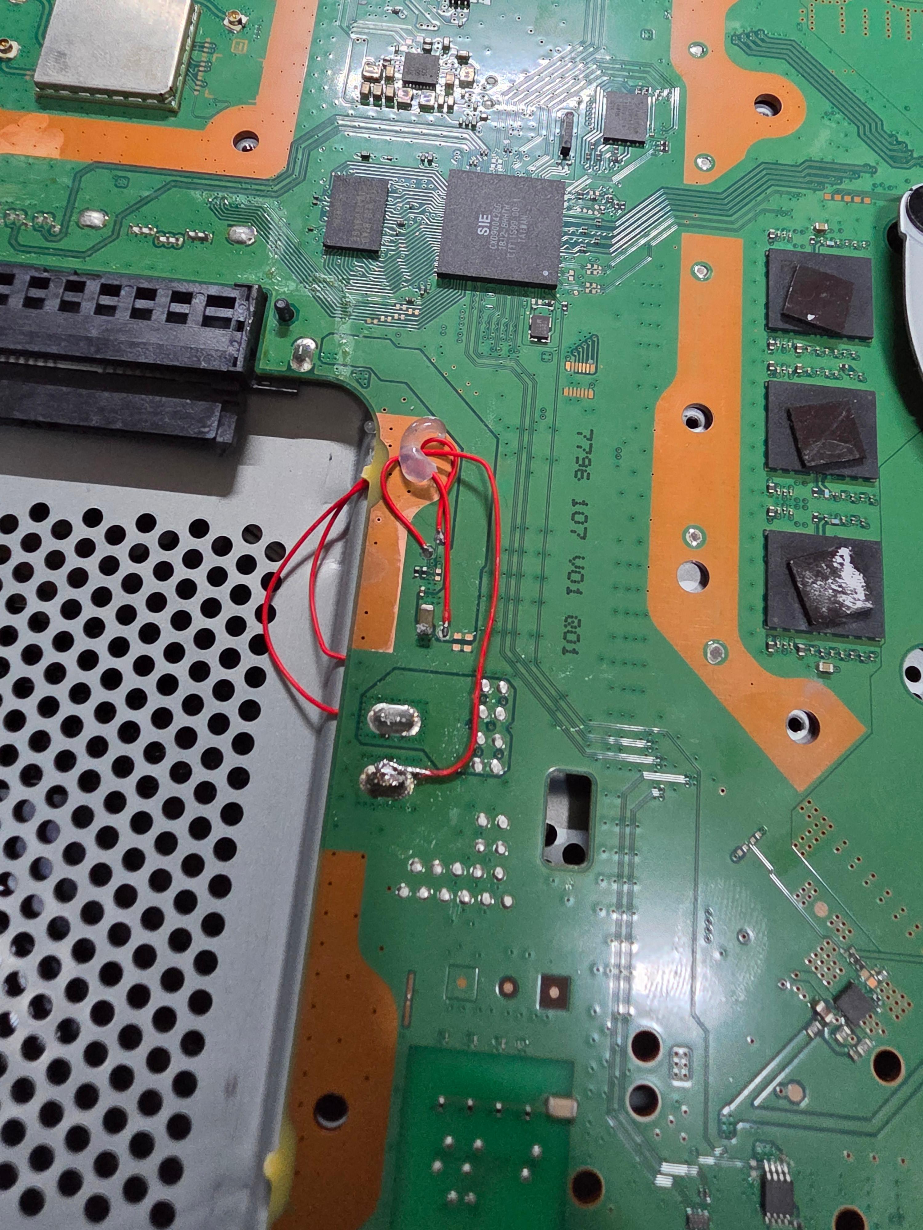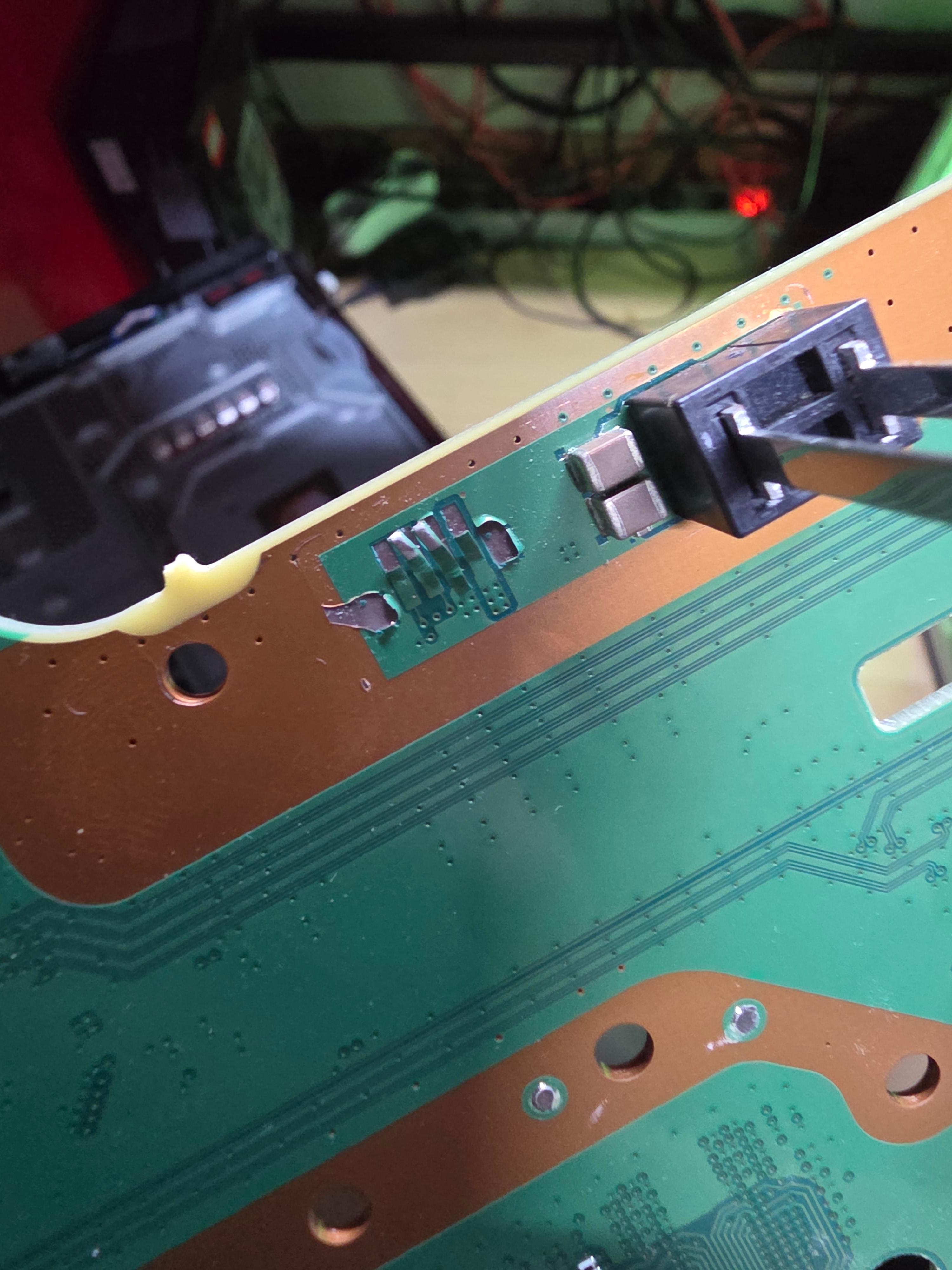 이번에는 뜯겨나간 부분이 아닌 트레이스를 따라가 그 부분에서 땜질을 시도한다.